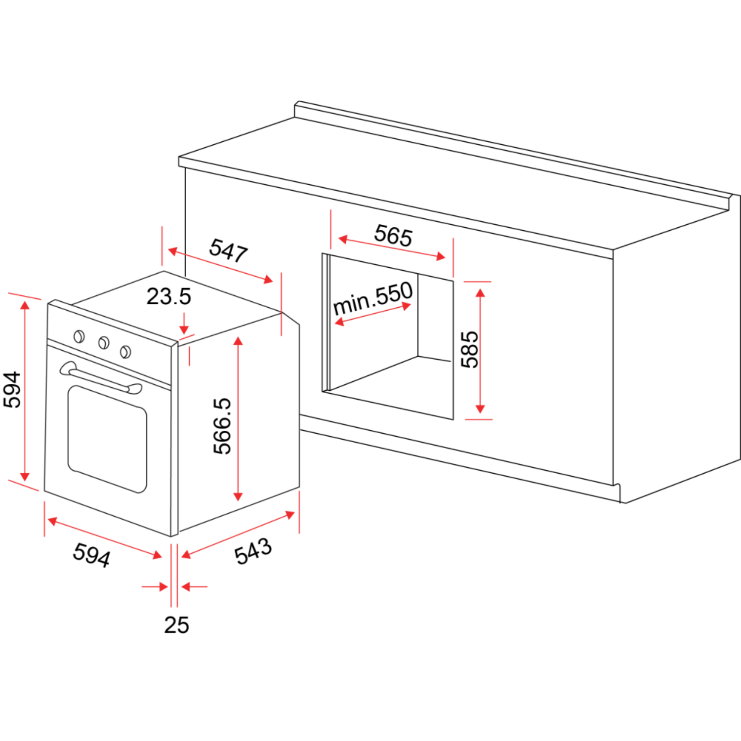 Built-in Dimension HxWxD: 585mm x 565mm x 550mm