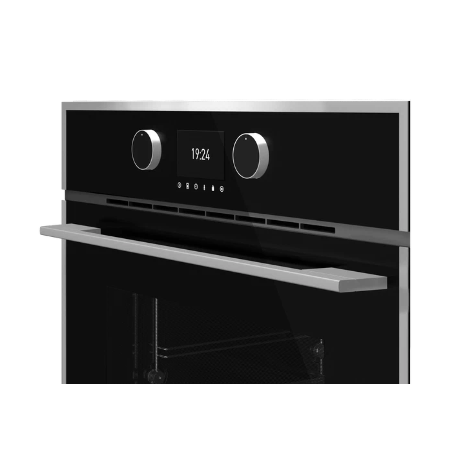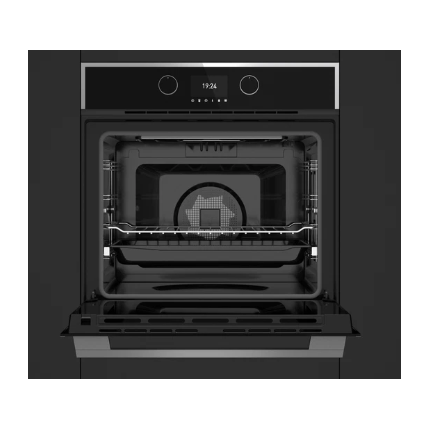 Cook like a pro with effortless performance and smart cleaning. The TEKA HLB 860 P Multifunction Pyrolytic Oven is a premium 60 cm built-in electric oven that brings versatility and convenience to everyday cooking. Equipped with 12 cooking functions and a personal cooking assistant with 20 built-in recipes, it gives you the flexibility to roast, bake, grill, and slow-cook with precision. Its DualClean system combines powerful pyrolytic self-cleaning with HydroClean® PRO steam cleaning, making maintenance quick and easy, while features like SurroundTemp even heat distribution, soft-close quad-glazed door, TFT touch display, digital timer and telescopic guides add professional-grade ease to every dish.