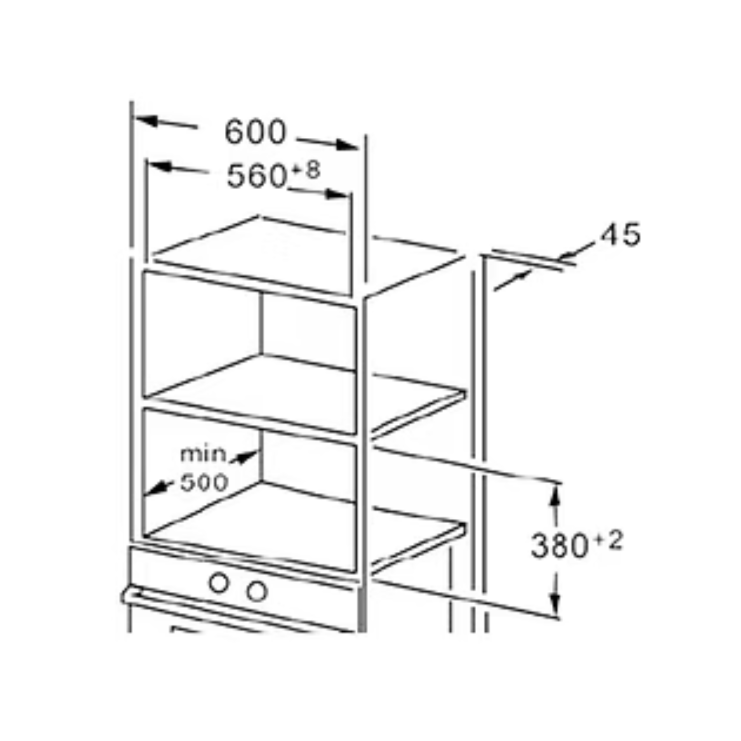 Cut-out Dimension HxWxD: 382mm x 600mm x 500mmn