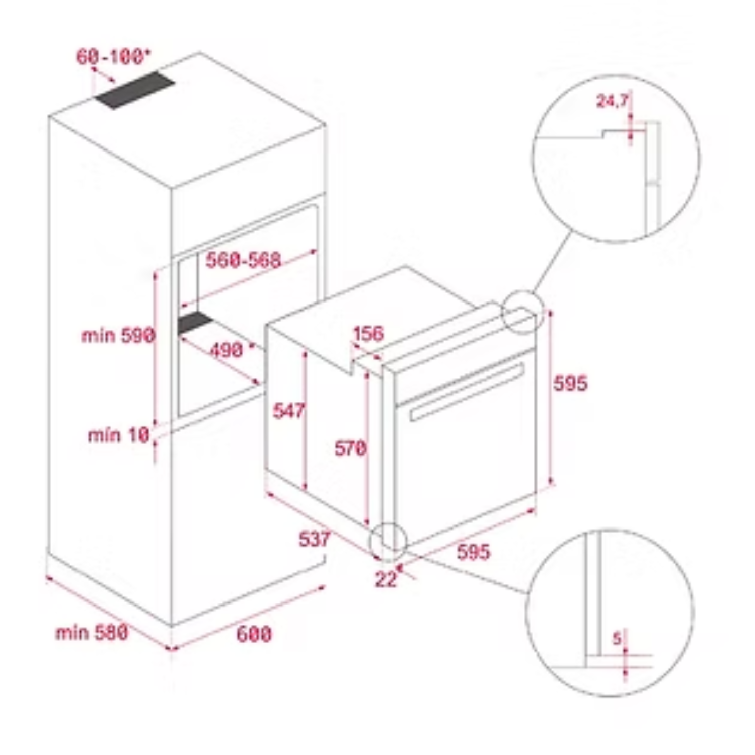 General Dimension HxWxD: 595mm x 595mm x 537+22mm
